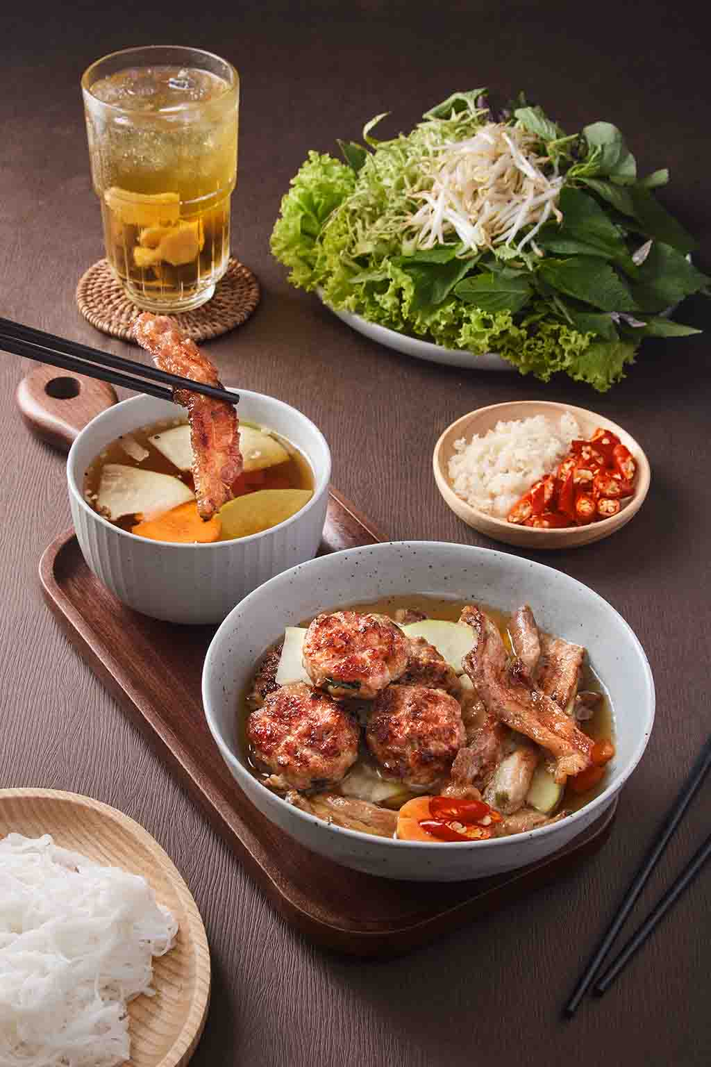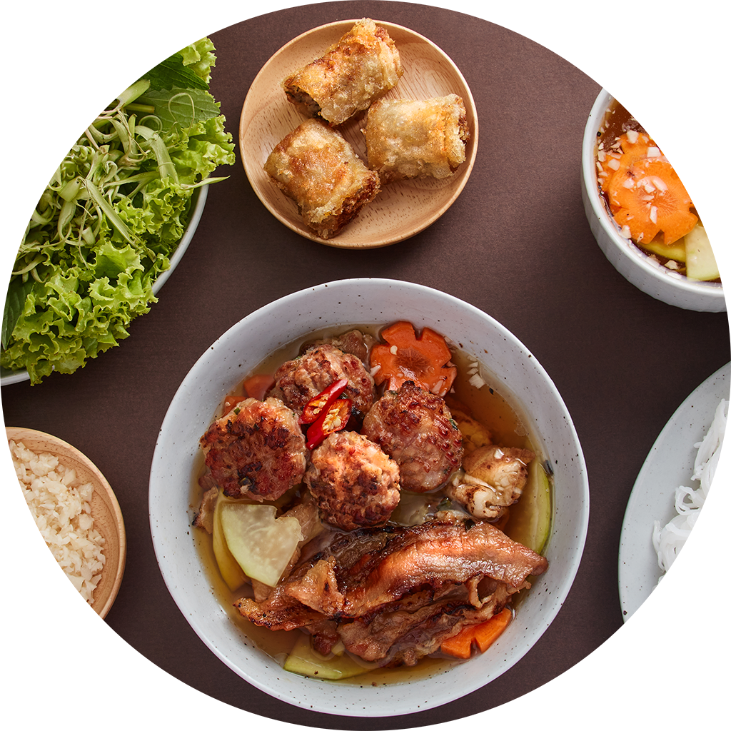 Nguyên liệu tươi ngon được lựa chọn kỹ càng, nước chấm gia truyền. Hương vị đặc trưng 100% Hà Nội.