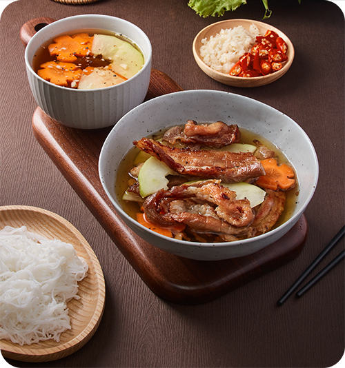 Nguyên liệu tươi ngon được lựa chọn kỹ càng, nước chấm gia truyền. Hương vị đặc trưng 100% Hà Nội.